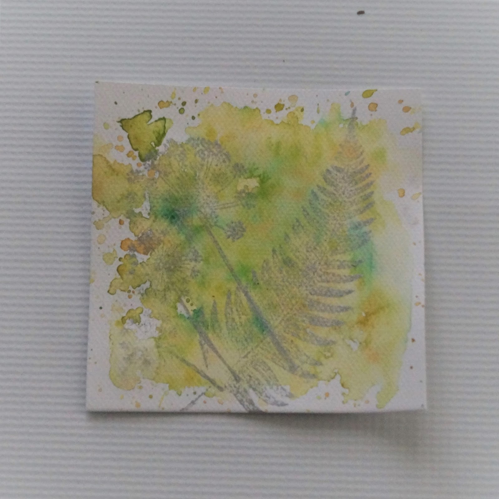 Dla lepszego efektu odczekajmy aż kartka wyschnie i nanośmy ponownie w postaci chlapek kolor zielony.