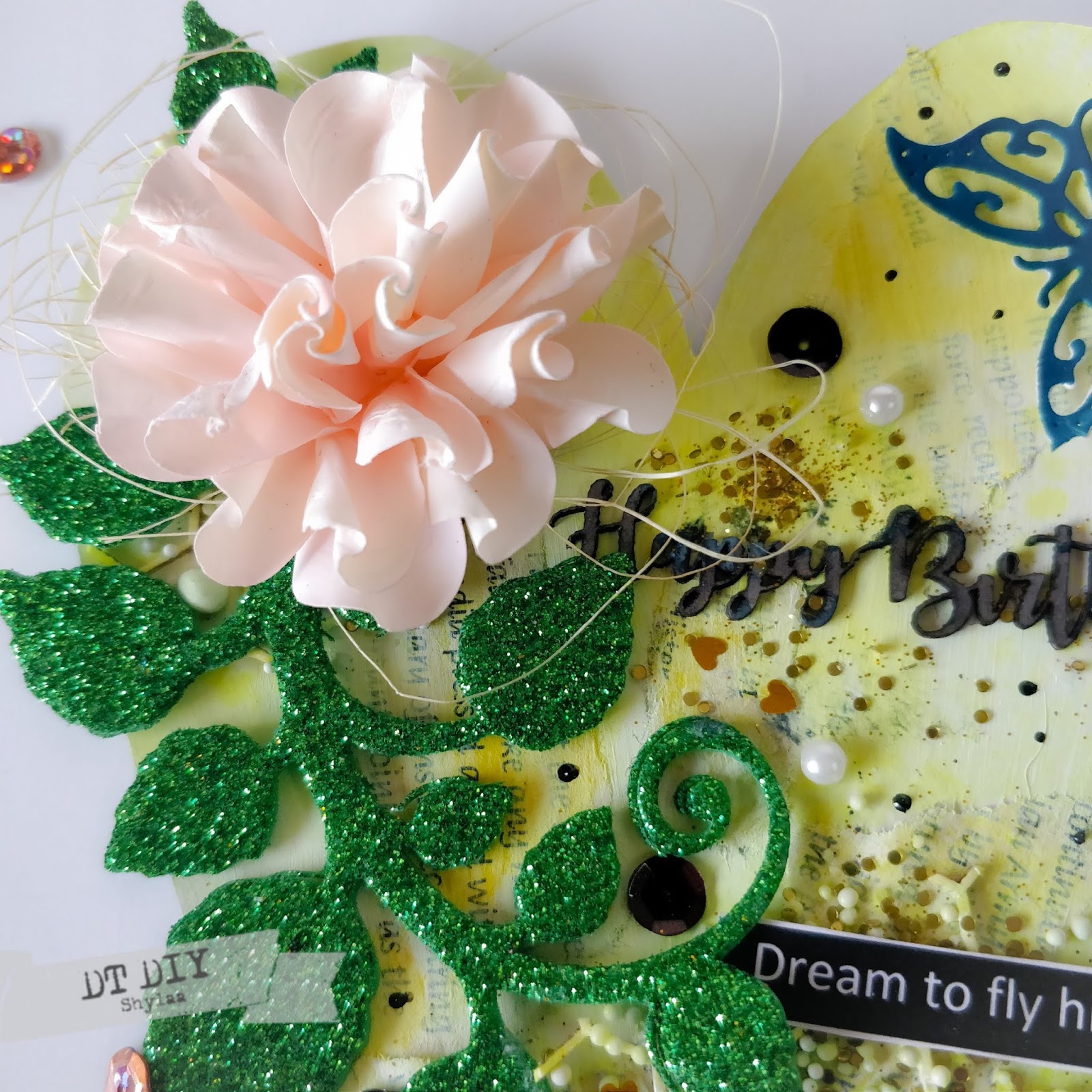I have used sprayed Expressions craft Sprinkle mist - Forest green & Citrus yellow colour.